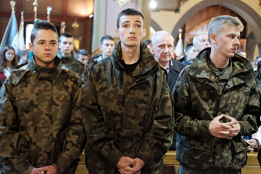 Uroczyste obchody rozpoczęła msza święta w intencji Ojczyzny, celebrowana w kościele św. Kazimierza przez ks. prałata Stanisława Czachora. W Eucharystii wzięła udział kompania reprezentacyjna Jednostki Strzeleckiej 2006 Nowy Sącz wraz z komendantem Związku Strzeleckiego „Strzelec” OSW i dyrektorem Zespołu Szkół nr 2 im. Sybiraków Sławomirem Szczerkowskim. Nie zabrakło również pocztów sztandarowych reprezentujących służby mundurowe oraz nowosądeckie szkoły.