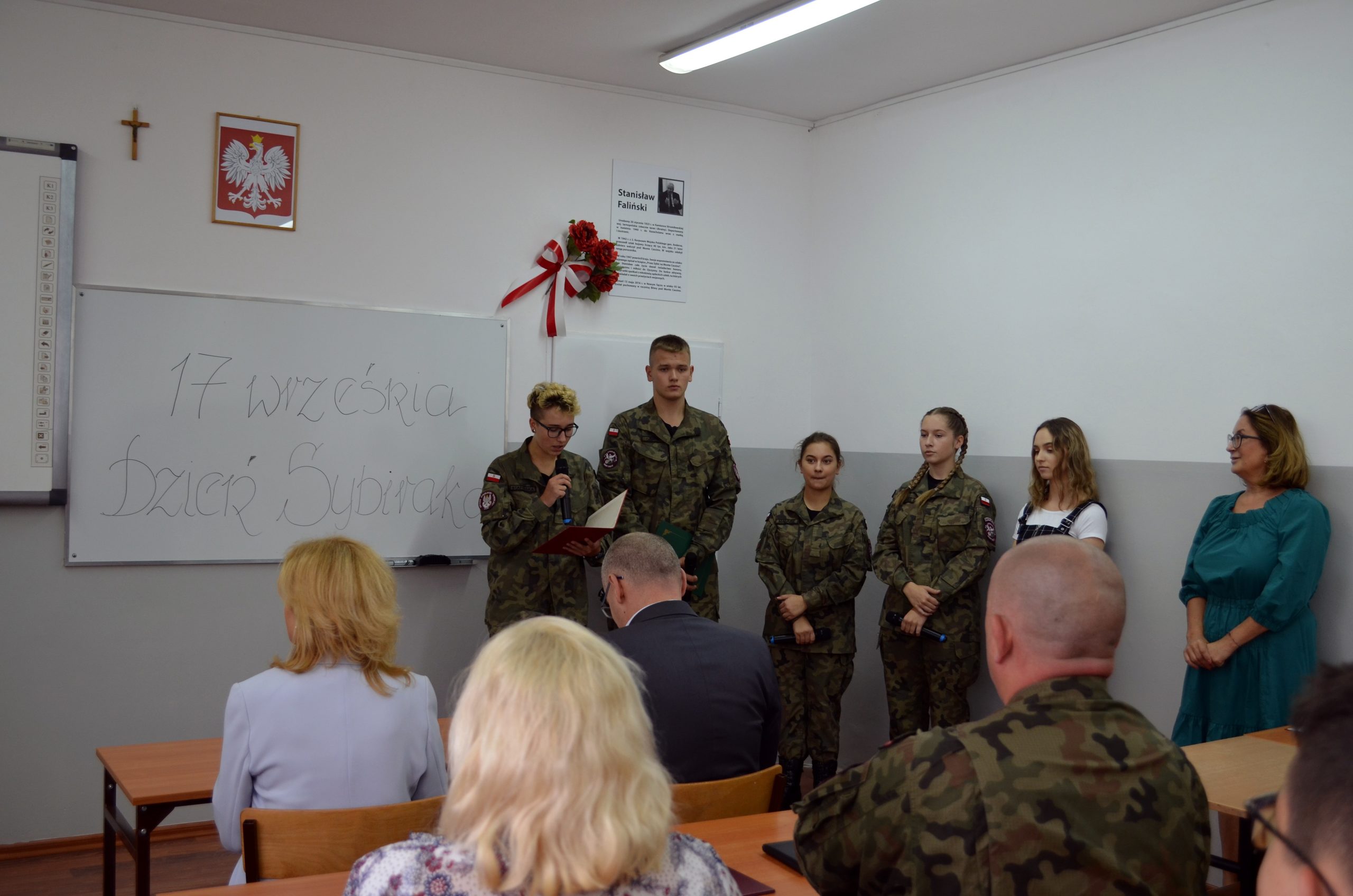 To był ważny i szczególny dzień zarówno dla szkoły, jak i jednostki strzeleckiej. Patronem placówki której dyrektorem jest komendant główny ZS bryg. Sławomir Szczerkowski są właśnie Sybiracy. Za zgodą dyrekcji sala nr 204 na pierwszym piętrze została poświęcona Stanisławowi Falińskiemu, porucznikowi Wojska Polskiego, Sybirakowi, uczestnikowi walk o Monte Cassino oraz naszemu przyjacielowi, w której umieszczono tablicę pamiątkową jego pamięci.
